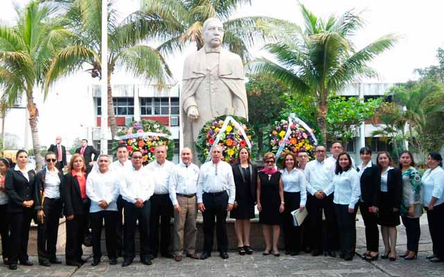 Con la presencia de las autoridades locales, administrativas y docentes de la facultad, así como de las fuerzas de seguridad y del servicio público, se ofrecieron arreglos florales y tres guardias de honor al ilustre mexicano, en el monumento ubicado en la explanada de la Unidad Académica.