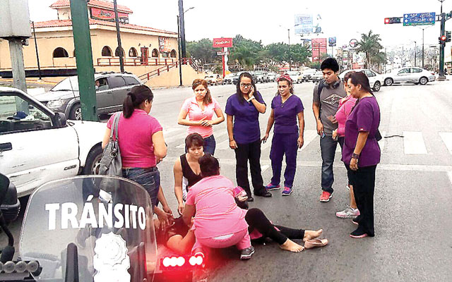 La mujer intentó cruzar la avenida cuando de pronto salió el auto compacto y la embistió dejándola tirada en medio de la vialidad y en un charco de sangre debiendo ser auxiliada por testigos del percance