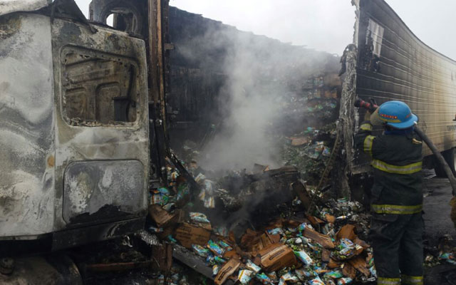 El camión se calcina por completo con toda la mercancía que traía y que era de exportación. Al darse ese incidente, otro camionero choca con la fila que se hizo por el incendio