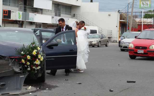 Novia se dirigía a la recepción luego de haber contraído matrimonio. Su coche choca y lesiona a una jovencita que iba en el vehículo afectado