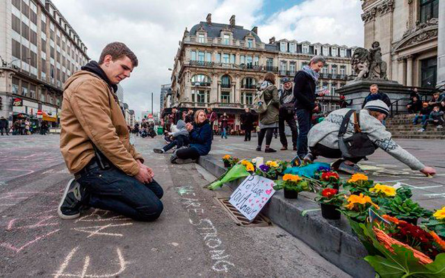 La aglomeración se formó delante del edificio de la Bolsa de Bruselas, donde varias personas depositaron flores, velas o escribieron mensajes de paz en el suelo. Algunas otras prefirieron manifestarse a través de la música.