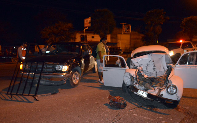Provoca un fuerte encontronazo vial después de atravesarse a un par de empleados que andaban de parranda. Los lesionados fueron hospitalizados