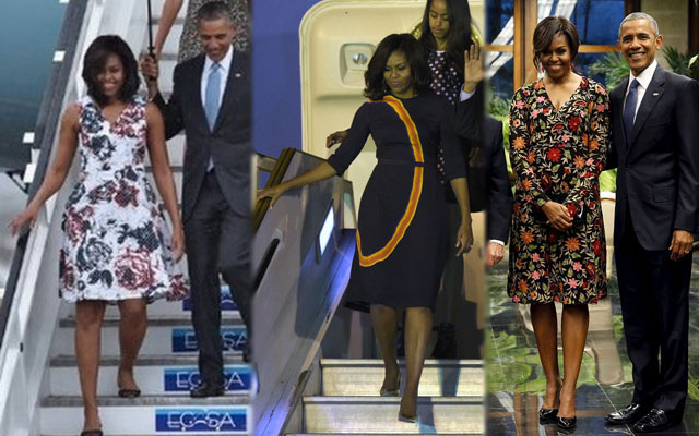 Michelle Obama apostó por lucir atuendos creados por diseñadores de origen latino, en sus visitas a Cuba y Argentina.