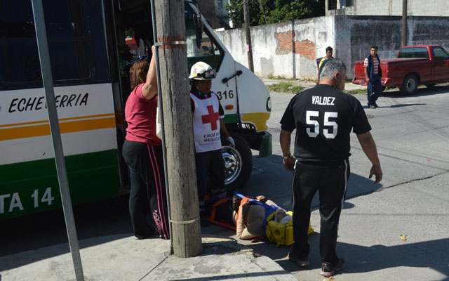 La señora pide detener al chofer y al momento de estar bajando las escaleras, resbala y se va contra el piso. Por las lesiones termina en el hospital