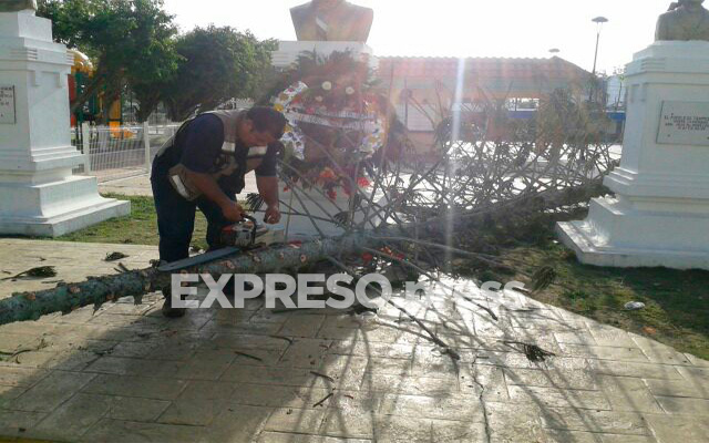 Fuertes vientos dejan árboles caídos en Tampico Alto