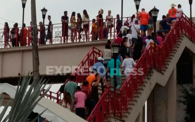 Cientos de personas hacen filas para poder ingresar el recinto portuario por el puente peatonal.