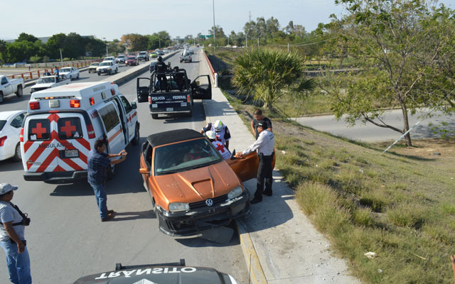 La conductora del automóvil se desplazaba a exceso de velocidad y antes de llegar al puente del bulevar Fidel Velázquez, pierde el control del volante y se proyecta contra el cordón de la banqueta. Paramédicos de la Cruz Roja la atendieron en el lugar