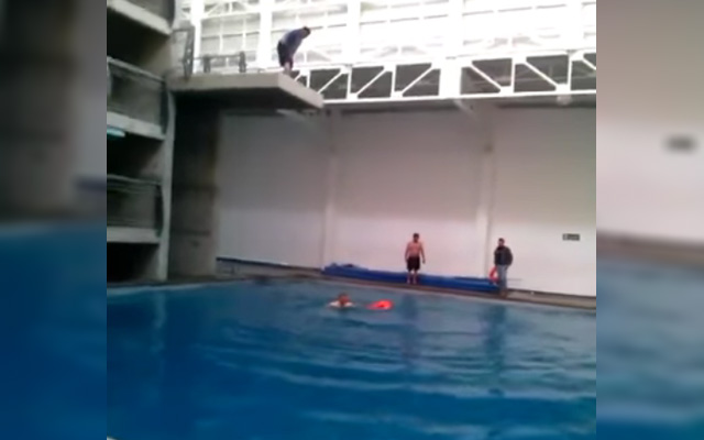 Mario Gómez fue obligado a lanzarse al agua aún y cuando le informó a los presentes que no sabía nadar