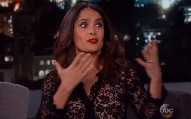 El conductor Jimmy Kimmel tuvo como invitada de su programa a la actriz Salma Hayek y no desperdició la oportunidad de preguntar su postura sobre las declaraciones del precandidato republicano Donald Trump.