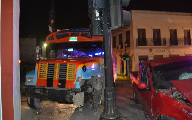 Por no respetar la luz roja del semáforo ubicado en las calles Quinta y González, un hombre chocó contra un autobús que transporta a obreros, lesionando a seis de ellos.