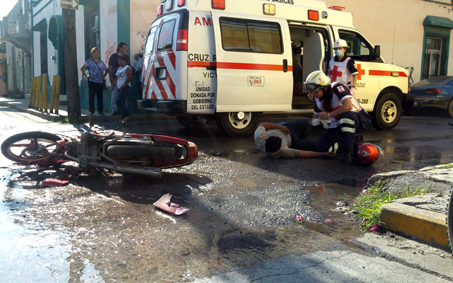 Viajaba en motocicleta y se desplazaba a exceso de velocidad, cuando la unidad de transporte público se le atraviesa por no extremar precauciones al momento de querer cruzar