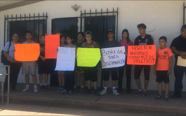 Un grupo de atletas y padres de familia de la Escuela de Halterofilia Villa de Tamatán, acudieron ayer por la mañana a hacer un plantón en las instalaciones del ITD indicando discriminación por parte del dirigente de la Asociación