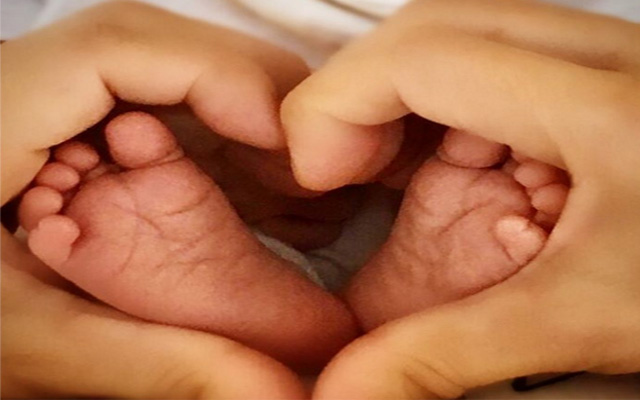 En su cuenta de Instagram, ‘La Chica Dorada’, publicó una fotografía de los piecitos del nuevo integrante de la familia, rodeados de las manos de su mami formando un corazón.