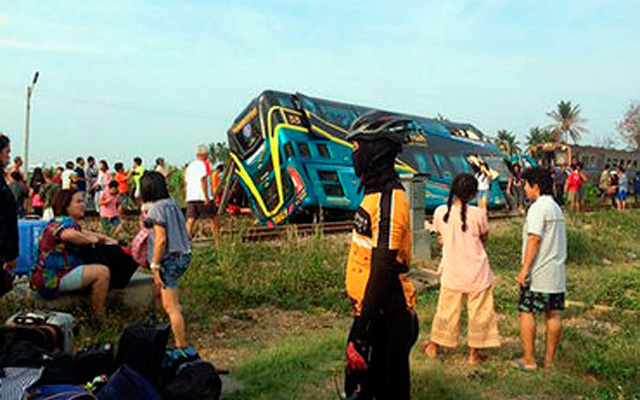 Choque entre tren y autobús deja tres muertos en Tailandia