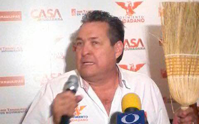 Escoba en mano y entre vivas fue como inició su conferencia Gustavo Cárdenas Gutiérez, candidato a la gobernatura por el Movimiento Ciudadano