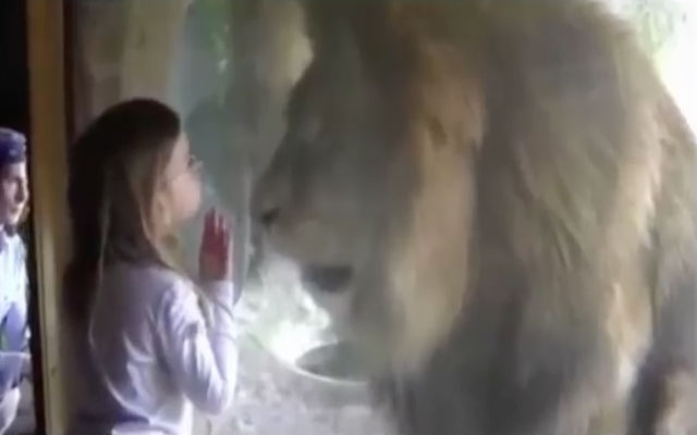 Increíble reacción de un león cuando una niña intenta darle un beso