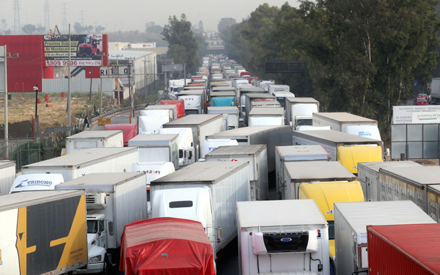 Los transportistas permanecen en el lugar desde pasadas las 4:00 horas, debido a que no pueden ingresar a la Ciudad porque no tienen permiso para circular por el doble Hoy No Circula