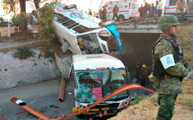 Caen dos autobuses en paso a desnivel en la México-Pachuca