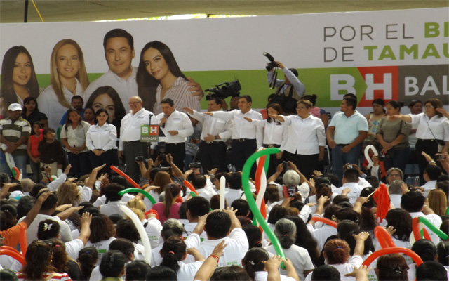 Ante unas 3 mil personas que acudieron al campo deportivo de la popular colonia Nacional Colectiva, Baltazar Hinojosa abrió su agenda de trabajo proselitista en la urbe cañera de El Mante