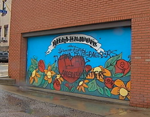 El colorido muro de una tienda mexicana de comestibles en Pittsburgh amaneció el martes vandalizada con un grafiti xenófobo