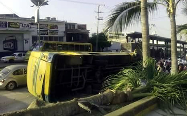 Las autoridades presumen que el conductor, quien está detenido, manejaba a exceso de velocidad y al salir de una curva perdió el control de la unidad.