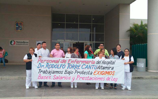 ALTAMIRA, Tamaulipas.- Personal eventual de los hospitales generales de Tamaulipas, se manifestarán el próximo jueves en las oficinas de la Secretaría de Salud para exigir su base.