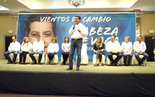 El candidato a gobernador del Sol Azteca, tuvo un encuentro de campaña en el Parque Bicentenario de Ciudad Madero ante la presencia de simpatizantes y autoridades del comité municipal y estatal del PRD