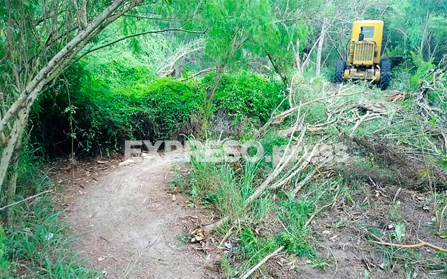 Desde este lunes a temprana hora maquinaria pesada arrasó con 300 metros de arboles y vegetación diversa del bordo del Río Bravo