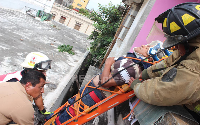 Cuatro ambulancias de la Cruz Roja, Bomberos y personal de Protección Civil, participaron en el auxilio del obrero