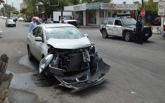 Simpatizante del Partido Acción Nacional se desplazaba abordo de su Nissan Versa, cuando omitió un señalamiento de alto a la altura del 13 Aldama y se estrelló contra el microbús que circulaba con preferencia
