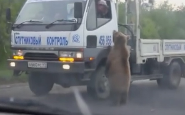 Captan a oso pidiendo comida a automovilistas en plena carretera (Video)