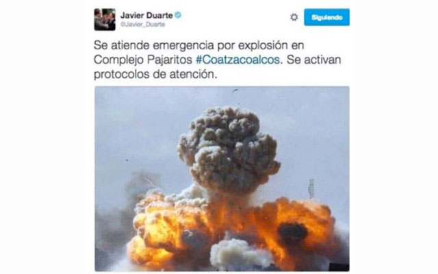 Duarte publica una foto de Libia al informar sobre la explosión de Pemex