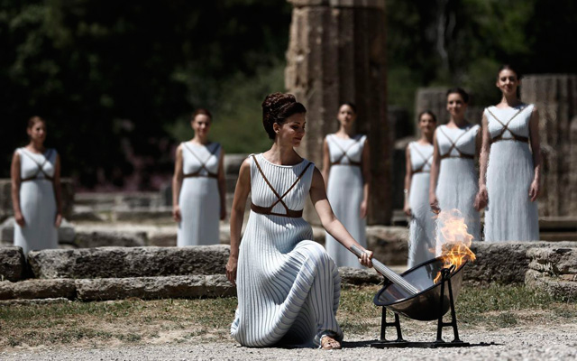 La llama de los Juegos Olímpicos de Rio fue prendida este jueves en la antigua ciudad de Olimpia en Grecia