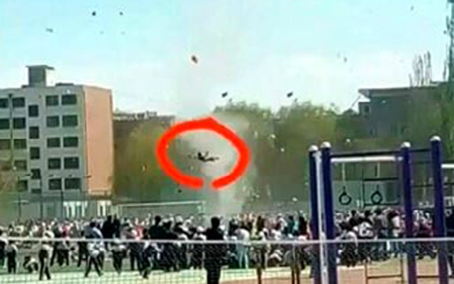 Un fuerte remolino de aire fue capaz de levantar a un niño en el patio de una escuela en el condado de Guangzhou, al noroeste de China