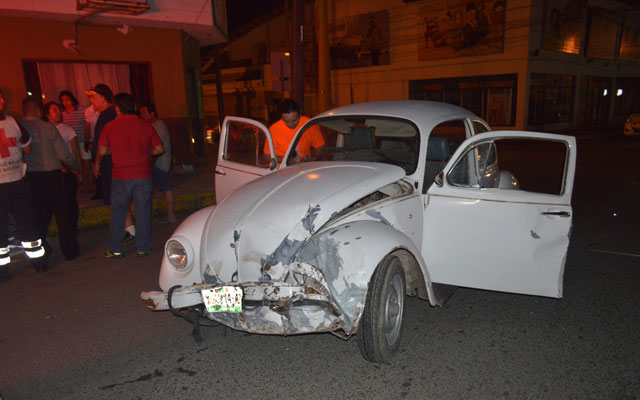 Joven conductora omite un alto en un transitado cruce y con su camioneta embiste el coche compacto de un empleado. Tras el golpe la responsable se va contra un tercer vehículo