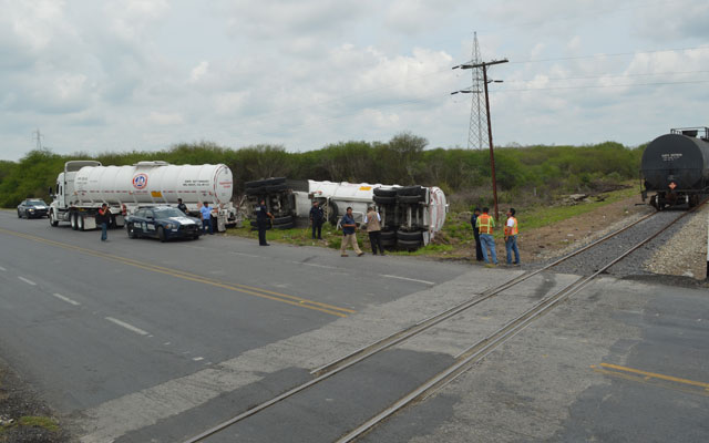 Aparentemente el chofer del camión intento cruzar las vías del tren, pero al hacerlo la caja de los cambios le falló y al quedar varada la locomotora, se llevó de encuentro un cilindro