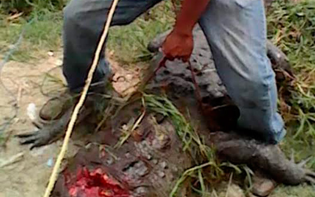 De forma salvaje un cocodrilo fue asesinado por un habitante, hasta el momento no identificado