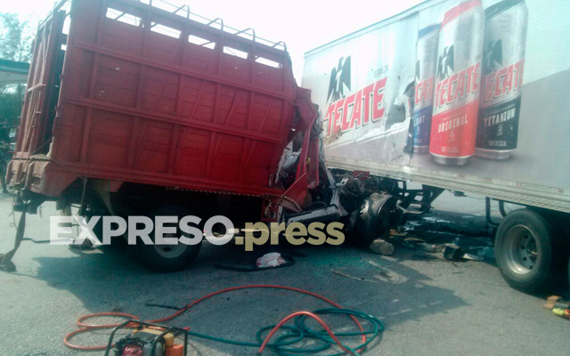 Joven y menor quedan prensados en choque entre camión y tráiler