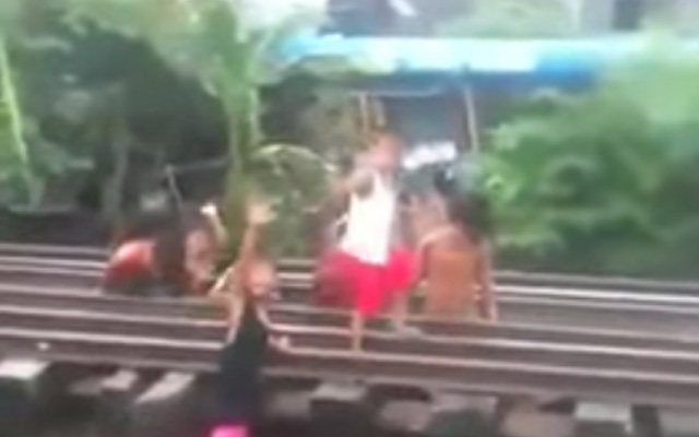 Menores arriesgan su vida jugando en las vías del tren (Video)