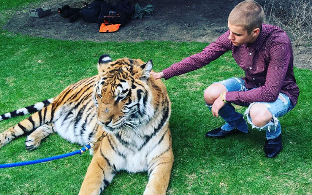 La foto de Justin Bieber en la que acaricia a un tigre de bengala molestó a la organización mundial PETA, debido a que el animal pertenece a un zoológico en el que hay maltrato.