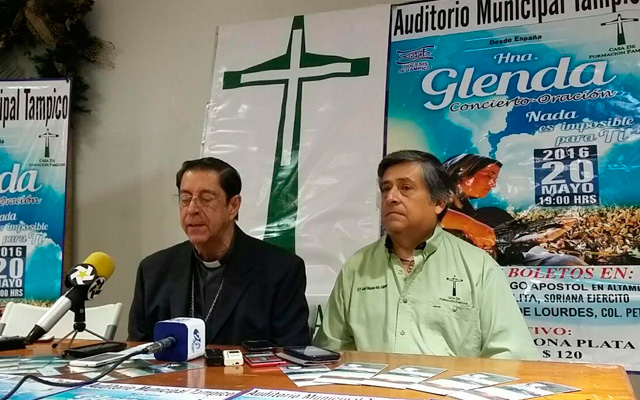En rueda de prensa, el Obispo de la Diócesis de Tampico José, Luis Dibildox Martínez, y Eduardo Hernandez invitaron a la población al concierto de la hermana Glenda que será el 26 de mayo en el auditorio municipal de Tampico, cuyos costos van desde los 120, 180 y 250 pesos.