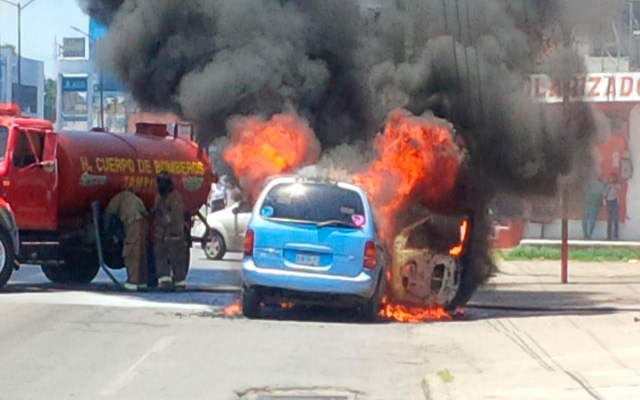 Se incendia camioneta en la carretera Tampico-Mante