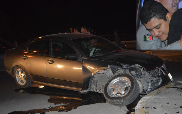 Estudiante andaba alcoholizado y estrella el coche con un camellón. Al ser abordado por peritos de Tránsito Local los golpea y amenaza de muerte
