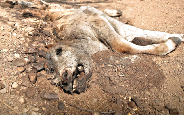 PÁNUCO, Veracruz.- Aumentan a 500 las muertes de vacas, derivado de la gran sequía que se vive en el norte de Veracruz; tal cifra podría aumentar de persistir la falta de agua para los semovientes.
