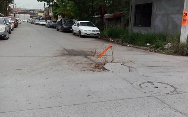 Previamente ya fue reportada y actualmente es señalada con palos y una tela de colores, vecinos del lugar explican que en repetidas ocasiones esta se mueve y provoca accidentes.