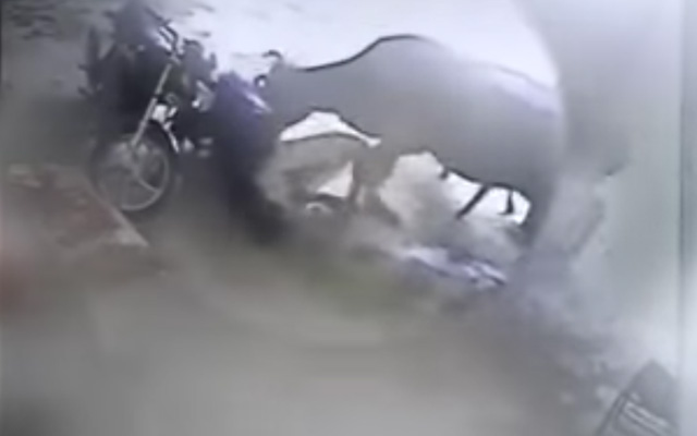 CIUDAD DE MÉXICO.- El animal no duda en castigar con virulencia y determinación al agresor, que huye del lugar de los hechos. Algunos internautas creen que la vaca defendía no a la mujer sino a su ternero, que estaba cerca. Pero lo cierto es que dirigió con precisión su enfado contra el varón para alivio de la joven india.
