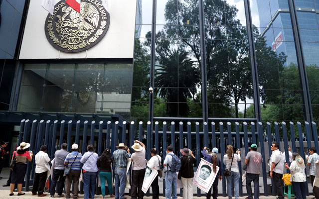 Durante más de una hora, los padres de los 43 normalistas de Ayotzinapa desaparecidos hicieron sonar cacerolas en las rejas de la Procuraduría General de la República