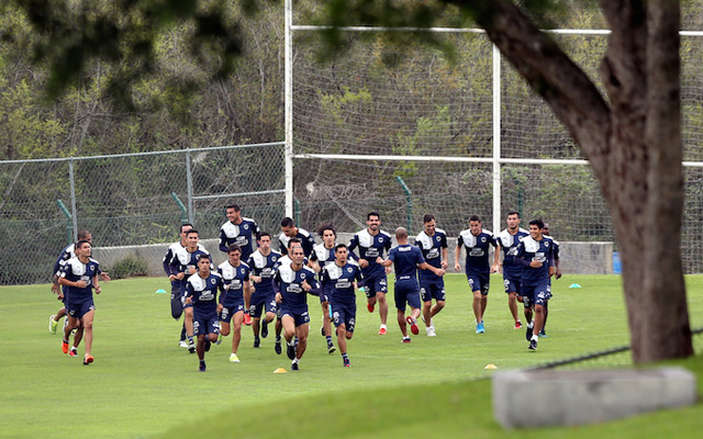 El equipo albiazul comenzó con un trote alrededor de una de las canchas de practica a la que asistieron algunos familiares y amigos de los jugadores