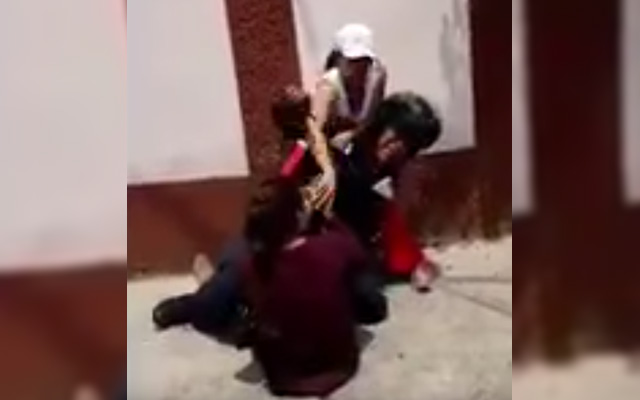 Tras la riña, una de ellas y el agente caen al piso por lo que su compañera lo retiene del brazo, le hace una llave y lo golpea