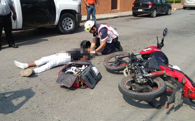 Motociclista se desplazaba en sentido contrario y al llegar al cruce con el 21 Matamoros, se estrella en la parte lateral de un automóvil donde viajaba un matrimonio